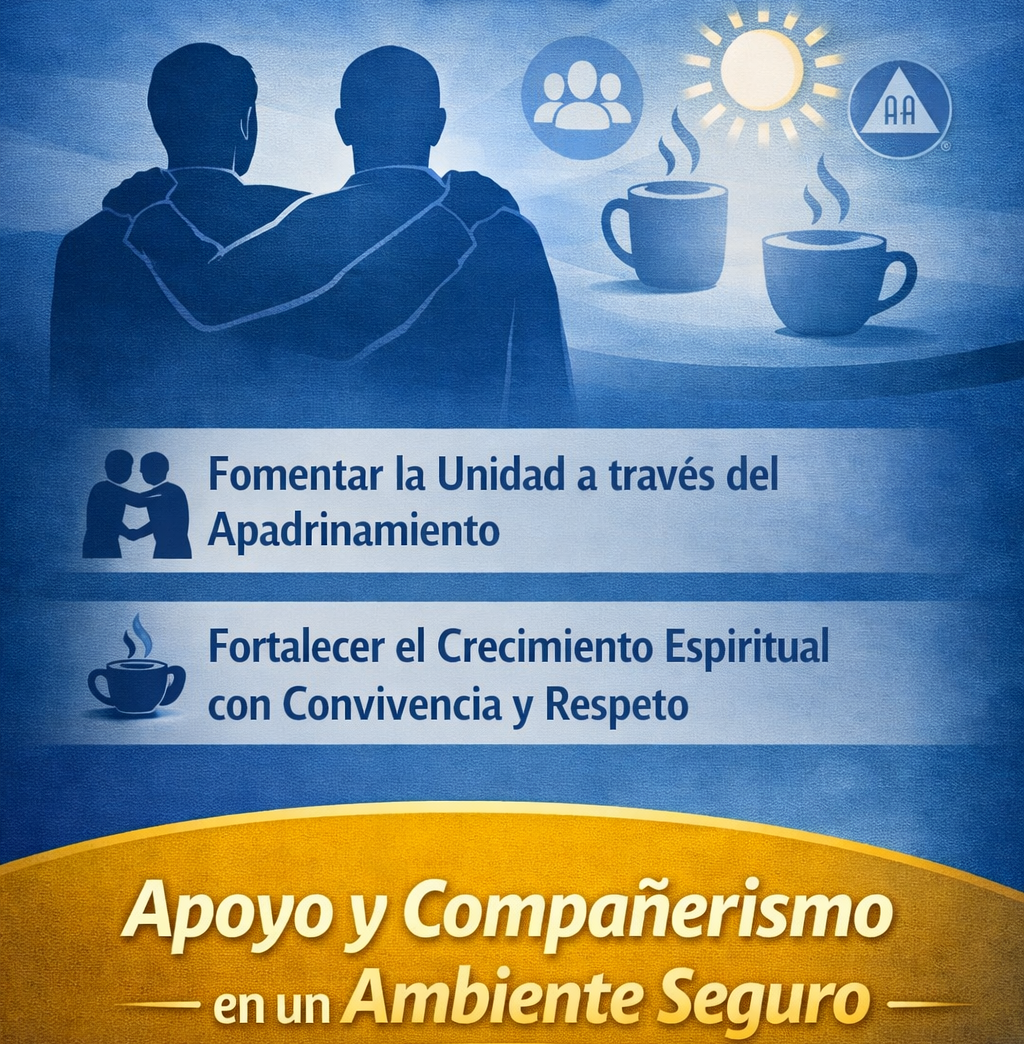Encargado de promover el apadrinamiento como base del crecimiento dentro de la comunidad, fomentando la guía y el acompañamiento entre miembros a través de la experiencia compartida. Asimismo, impulsa el fortalecimiento espiritual mediante espacios de convivencia —como el café— que favorecen la unidad, la confianza y el intercambio de experiencias en un ambiente de respeto y anonimato.